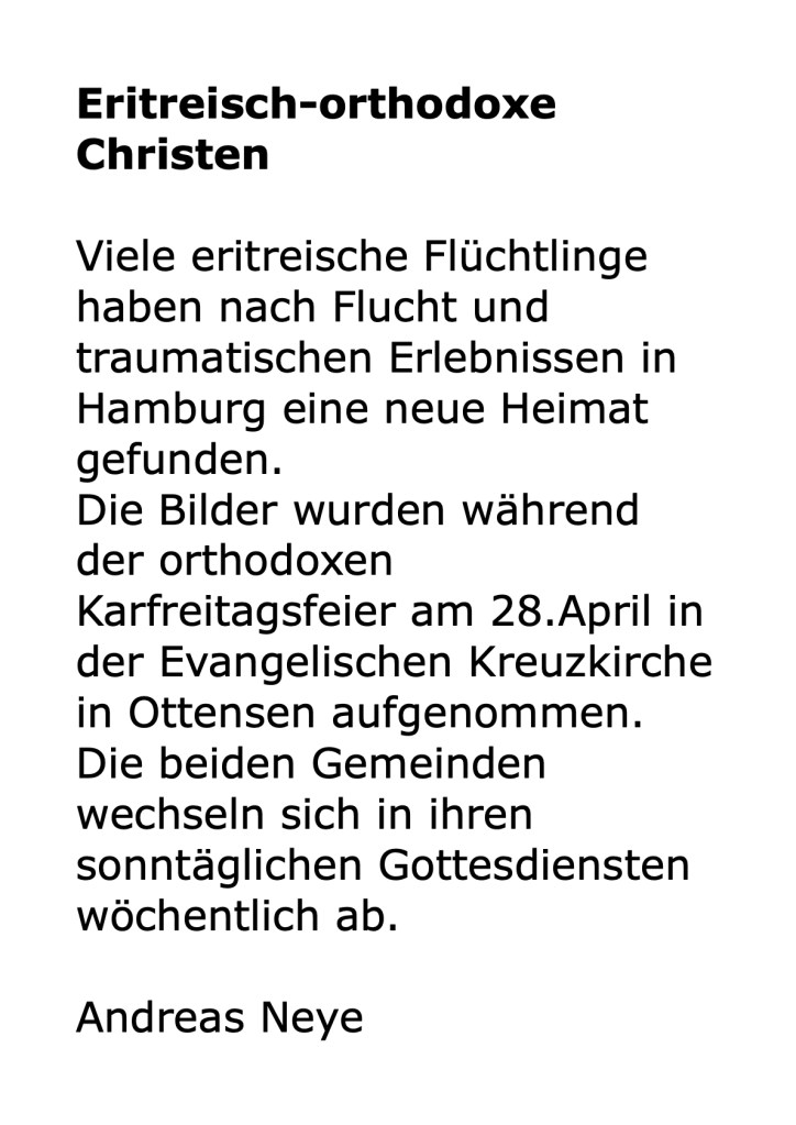 Der Foto-Club zeigt Reportagen zur Glaubensfreiheit. Wir danken an dieser Stelle für die fruchtbare Kooperation mit dem „Altonaer Museum“, das uns mit seiner aktuellen Ausstellung „Glauben und glauben lassen“ inspiriert und viele Kontakte zu den Gemeinden vermittelt hat.